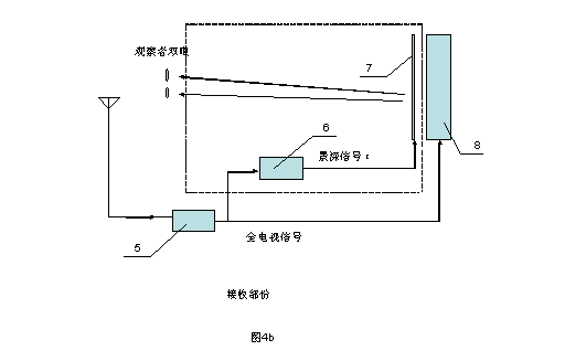 圖4b,新型立體電視系統(tǒng)的接收部份的框圖。其中虛線部份,即是在普通電視系統(tǒng)基礎上新增的部份。