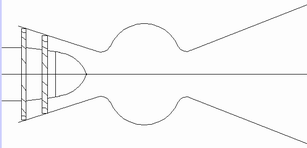 我所設(shè)想的飛機發(fā)動機如圖所示,與現(xiàn)有的飛機發(fā)動機相比,只有進氣的壓縮蝸輪部分,沒有排氣的蝸輪部分,后段高溫部分只是一個空殼子。進氣壓縮蝸輪由另一臺發(fā)動機帶動壓縮空氣。蝸輪錐頭可以向氣流方向運動,堵住進氣口,成為箭發(fā)動機。一臺發(fā)動機有多種功能,這樣設(shè)計會有如下優(yōu)點:
