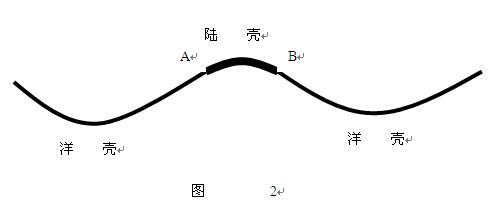 海陸的變遷一直一來是地球科學探索的重點,更是揭開現(xiàn)代地殼運動的關鍵。魏格納將海陸的分布詮釋為大陸的漂移,繼而形成了板塊構造說,后來更有海底擴張說,然最終不能將海陸變化情況完整展現(xiàn)在人們面前。本人從新的視角重新認識地殼的演化,前文已經(jīng)初步論述了《也談地殼的形成與發(fā)展》,《地殼的形成與發(fā)展———海陸的形成》,《地殼的形成與發(fā)展——板塊的定義與斷層》。本文擬將海陸變化的情況作一簡要論述。本文涉及一個概念地質(zhì)補償,所謂地質(zhì)補償是指地層斷裂的兩側(cè)巖石通過地震、滑坡等地質(zhì)事件對斷裂區(qū)域一種物質(zhì)填補過程。地質(zhì)補償是重力作用的結(jié)果,是一個銷高填低的過程,此過程不僅發(fā)生在地表同樣也發(fā)生在地下斷裂區(qū)域。冰輒沉降理論認為:地殼不是永不沉沒的諾亞方舟,更不是漂浮且有下插現(xiàn)象存在的重疊結(jié)構。它是一個以板塊為基本構造單元的剛性殼體,各構造單元以簡單的拼接組合的方式構成一個整體,以板塊間的相互支撐來維持整體的相對平衡。冰輒沉降理論認為:地殼的運動是一種常態(tài),至少就現(xiàn)階段來說是絕對的,而整體平衡是相對的。地殼的運動要受到自身的重力作用和板塊間支撐作用的雙重制約。當然板塊的大小、形狀、厚薄、起伏狀況等自身屬性同樣是板塊運動的必要條件。我們知道:地球上三分陸地七分海洋,海洋面積約占地球面積的三分之二;我們再看地殼的厚度:大陸地殼厚度較大,平均約為33千米。高山、高原地區(qū)地殼更厚,最高可達70千米;平原、盆地地殼相對較薄。大洋地殼則遠比大陸地殼薄,厚度只有幾千米。http://baike.baidu.com/view/65376.htm,以此我們不難作出地殼的模型,下面是拉伸的地殼。說明:陸殼、洋殼是相互對接在一起的,可以這樣認為A、B兩點同時固定了陸殼和洋殼。從圖1我們不難看出陸殼厚重而狹窄,洋殼單薄而廣闊,這就造成了陸殼和洋殼自身重力作用下的不同運動。重力作用下洋殼中心沉降表現(xiàn)更為突出,而陸殼由于重而狹窄中心沉降表現(xiàn)相對較弱,其受力更多表現(xiàn)為洋殼中心沉降的牽拉。又因為洋殼陸殼相對比較穩(wěn)定,所以其破裂帶主要位于板塊交界地帶。
