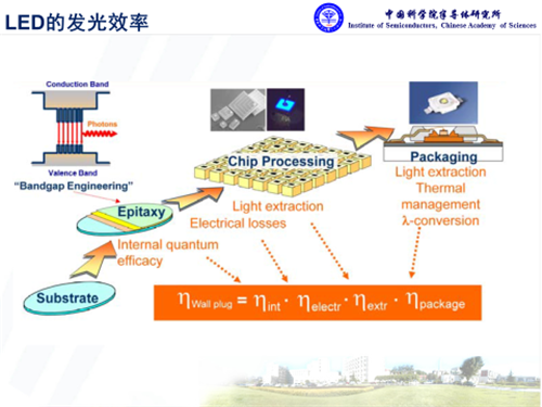 氮化鎵是直接帶隙的半導(dǎo)體材料,在光電應(yīng)用方面具有獨(dú)特優(yōu)勢(shì)?;诘壍腍B-LED對(duì)于通用照明來說,其核心問題是發(fā)光效率。其中外量子效率主要取決于三個(gè)層面的因素,內(nèi)量子效率、光提取效率,還有封裝方面的熒光轉(zhuǎn)化等效率,而且每個(gè)環(huán)節(jié)都息息相關(guān)。