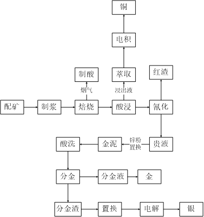 圖1 招遠(yuǎn)直接氰化工藝流程
