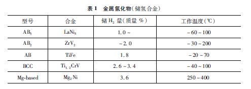 鎳氫電池的負極材料主要是一個跟氫結合很強的元素與跟氫結合不強的元素,通過適當?shù)某煞峙浜希M成化合物,這樣又能夠吸收氫氣,同時也能夠放出氫氣的化合物(表1)。一方面可以作為氫氣儲存使用,同時也可以作為鎳氫電池負極材料使用,這也是目前最大應用領域。