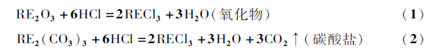 溶礦過程是以鹽酸溶解稀土碳酸鹽或氧化物,制備萃取分離料液,稀土濃度1-1. 7mo1/L,過程中每噸REO主要消耗2. 1-2. 5噸鹽酸,2-5噸水。