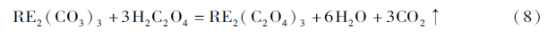 稀土沉淀過程使用沉淀劑進行沉淀轉型和進一步除去雜質,典型的沉淀劑為草酸(H2C2O4)。其反應為: